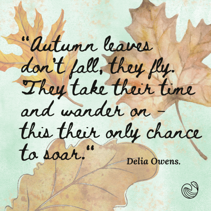 - “Autumn leaves don’t fall, they fly. They take their time and wander on – this their only chance to soar.” – Delia Owens