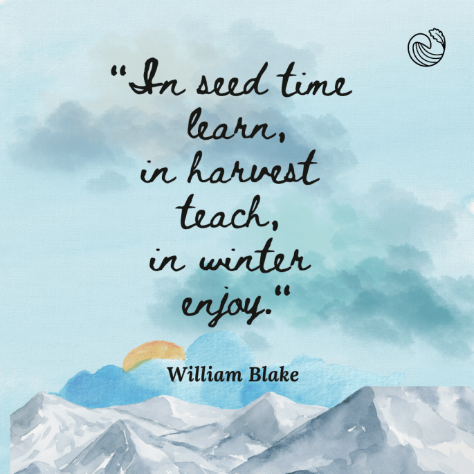 - “In seed time learn, in harvest teach, in winter enjoy.” – William Blake